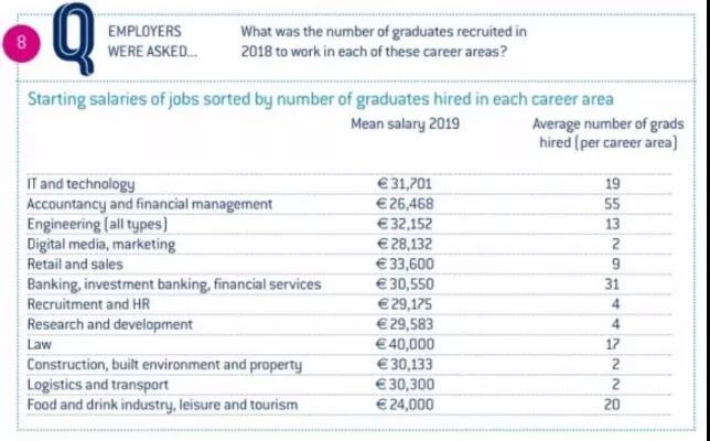 只有近3%的雇主,提供低于2萬歐元的工資;81%的雇主卻表示明年將維持或提高對畢業(yè)生的招聘要求,且絕大多數(shù)受訪雇主(88%)愿意提供培訓和實習機會。