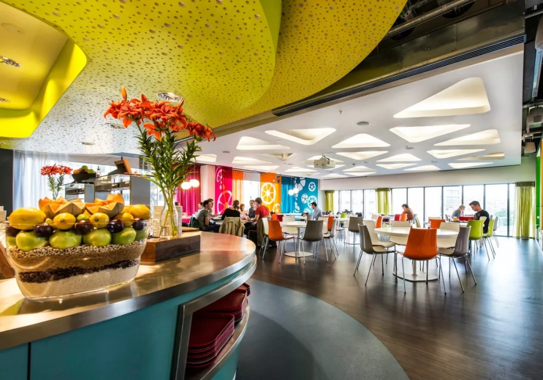 該辦公大樓由四座建筑組成,置身其中仿佛置身一個大型藝術(shù)館,為谷歌員工提供了一個絕佳的辦公及休閑空間。除了創(chuàng)新的辦公空間,還包括多個附加功能,如5個餐廳、42個微型廚房和交流中心、游戲室、健身中心、游泳館、會議學(xué)習(xí)和發(fā)展中心、技術(shù)站、超過400個非正式和正式的會議室和電話亭等。