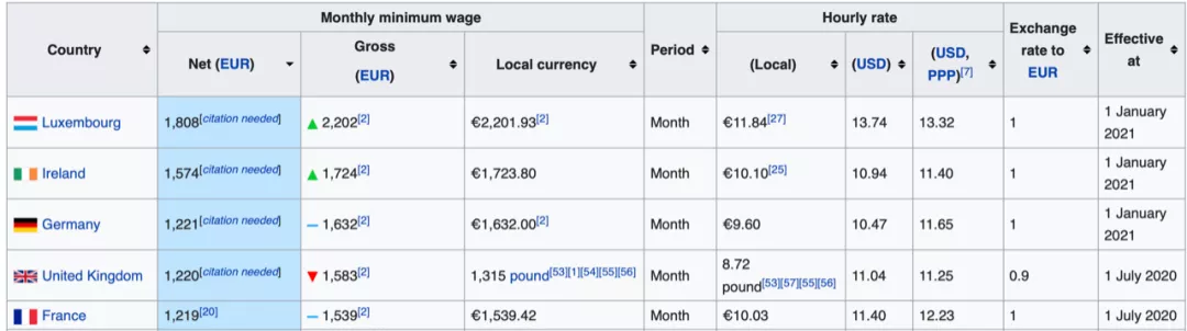 根據Eurofound2021年最新數據,愛爾蘭的最低工資水平是歐盟第二高的,為每月1724歐元(折合人民幣約1.3萬元)。
