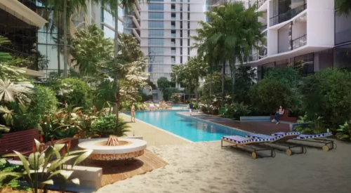 周圍亞熱帶綠化帶、瑜伽草坪、數百萬澳元巨額打造人工沙灘及游泳池、小型健身泳池、私人泳池間、戶外廚房區域、酒吧、私人閱讀室…你會發現,城區生活也可以如此愜意。