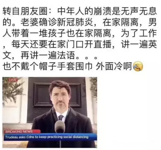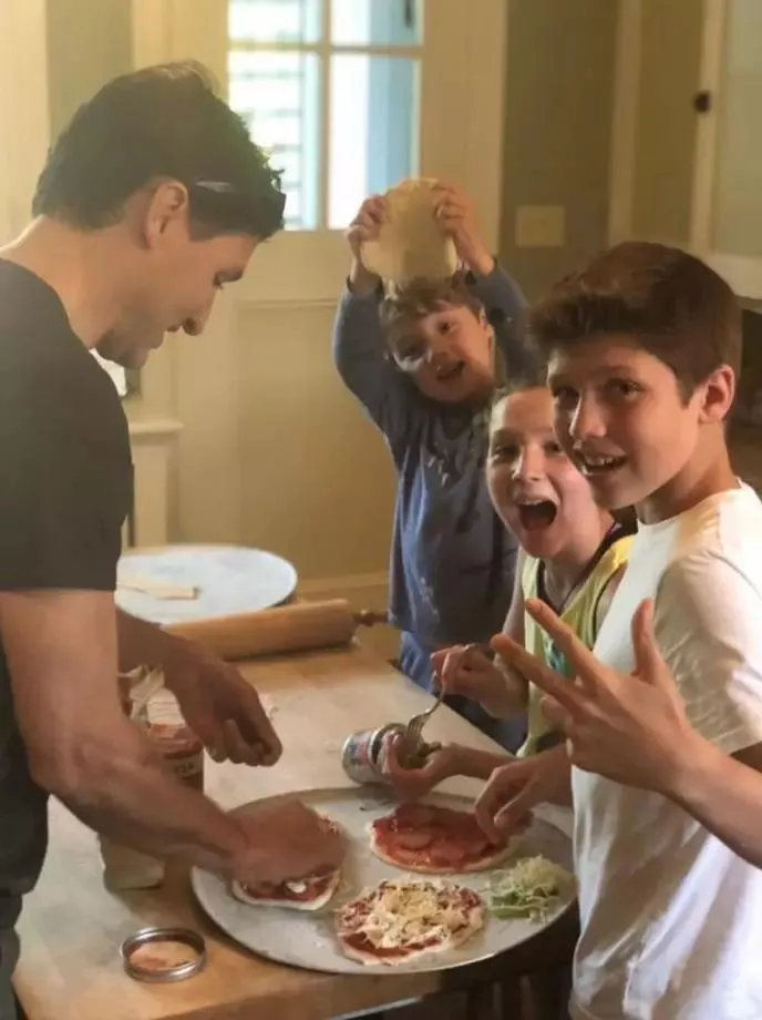 此外,老婆確診,保姆停工,特魯多更是隔離在家單挑三娃,給三個娃準備日常飲食、分發玩具、陪同玩耍、洗澡……