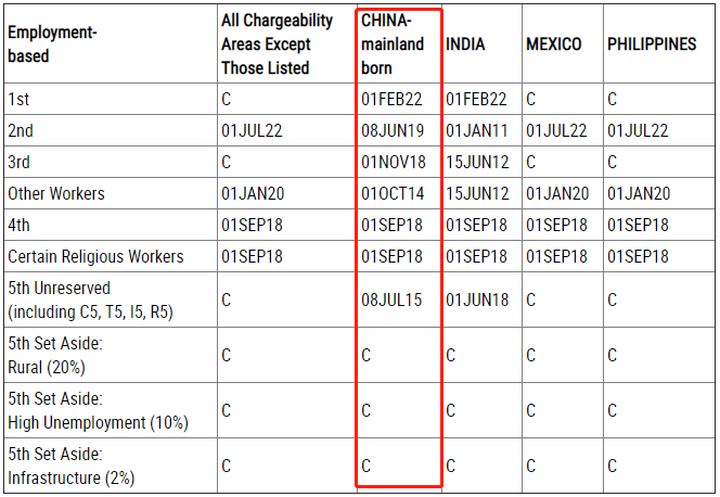 EB-1:排期為2022年2月1日,無變化