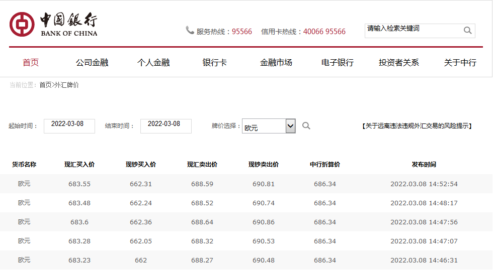 2022年3月8日歐元匯率