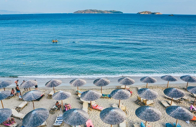 但是肯豆玩耍的海灘并不是這些公共海灘,而是在 Nammos 海灘俱樂部。