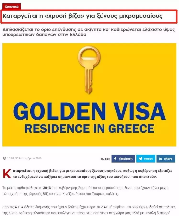 △Sofokleousin希臘黃金簽證變政報道截圖