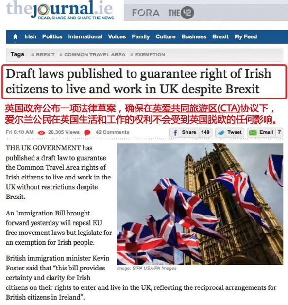 英愛之間特殊的CTA協(xié)定是早于《歐盟條約》的存在,該協(xié)定確保了愛爾蘭公民世世代代在英國自由定居、生活、接受教育、獲取福利的特權(quán)!