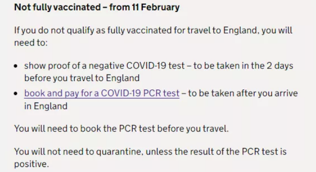 而對于沒有在獲批地區接種英國認證疫苗的旅客,或未完全接種疫苗的旅行者,需要提供: